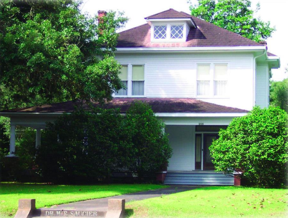 Saucier-Bares House was built for Dr. Merrick Saucier, one of the founders of the Lafayette Sanitarium, which was the forerunner to Oschner Lafayette General Medical Center. When the Saucier-Bares House was built, it was located near the outskirts of town, and close to the gateway for UL Lafayette’s original campus. It was constructed of solid cypress and contains a fully-enclosed basement. In 1982, the house was purchased from Dr. Saucier’s daughter by Wendell Bares, who has since restored the home to its original condition. Bares’ maternal grandmother, Josephine Oxford, was a collateral descendant of Martha Washington. As such, the house now has the honored distinction of being listed as an historic property by the Reverend Obadiah Holmes Chapter of the National Society of Colonial Dames 17th (NSCD XVII) Century. NSCD XVII Century is an organization of women who are lineal descendants of an ancestor who lived and served prior to 1701 in one of the original colonies of the present United States of America. They are devoted to preserving the memory of those who settled in the United States of America prior to 1701.